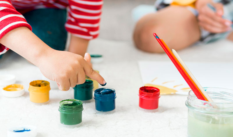 1.Encourage your child to dip their fingers into the paint and transfer this onto the paper to create their artwork!
